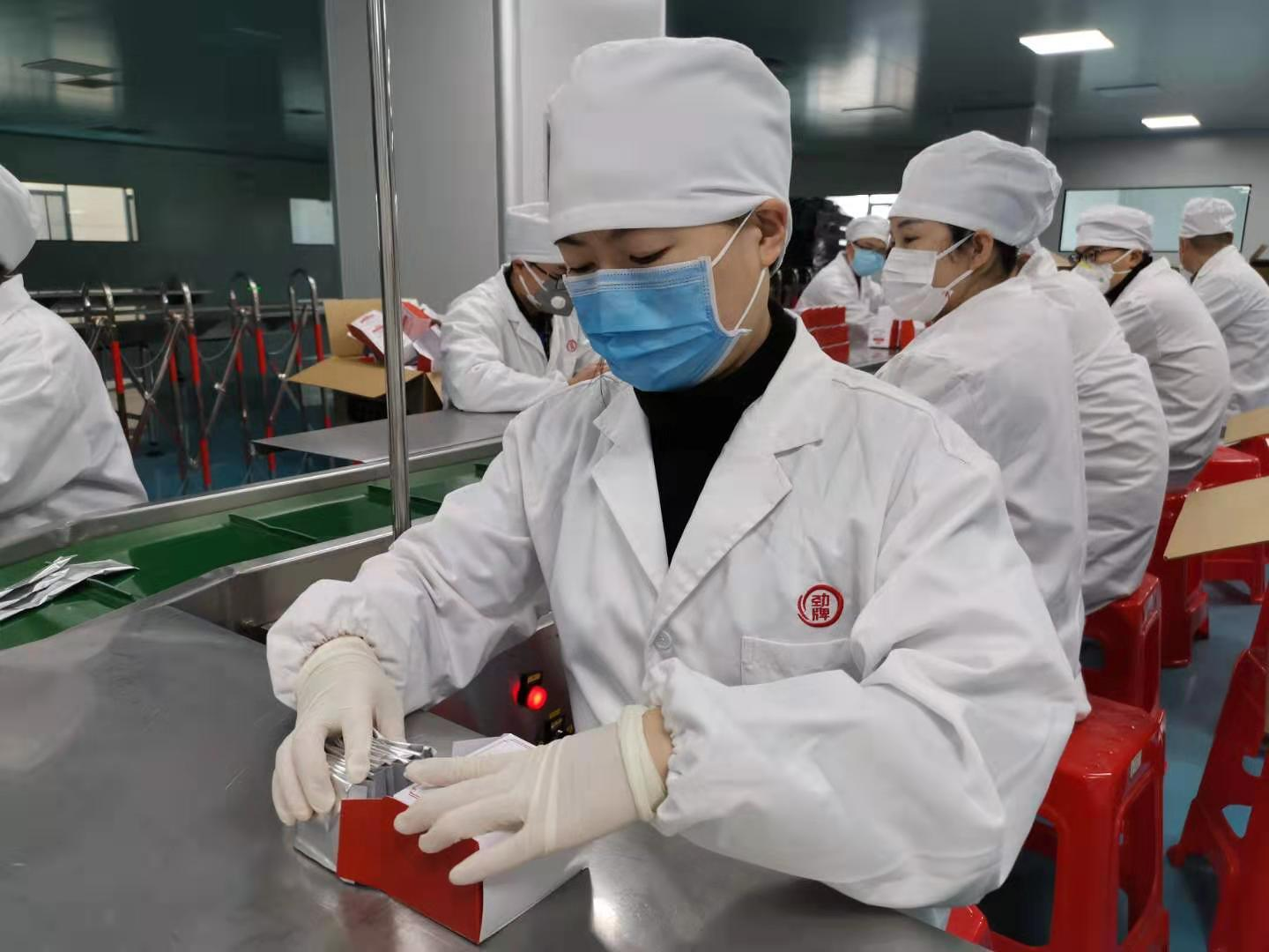 經(jīng)過篩選,首批28名志愿者正式確定。他們來自技術(shù)、生產(chǎn)、營銷、管理、后勤等各條戰(zhàn)線。根據(jù)大家的志愿平均分成白班和夜班兩個班。經(jīng)過崗前動員和培訓(xùn)后,當晚第一批夜班生產(chǎn)13名志愿者投入到了緊張的生產(chǎn)中,工作涉及貼標、折盒、裝盒、封箱、碼包等工序。不少志愿者都希望自己的班往前排,盡快上崗。