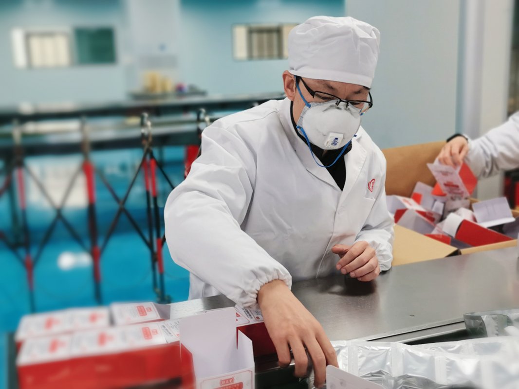 來自體驗服務(wù)部的汪夢露看到征召通知后,立即電話聯(lián)系報名事宜。她參加了第一批晚班的包裝生產(chǎn),換上白大褂投入到包裝生產(chǎn)中。“能參加防疫藥品的生產(chǎn)是一件很光榮的事!”“公司贈送給我們的預(yù)防藥都是車間同事加班加點生產(chǎn)出來的,他們很辛苦,自己符合報名條件,就想去替換下他們。”