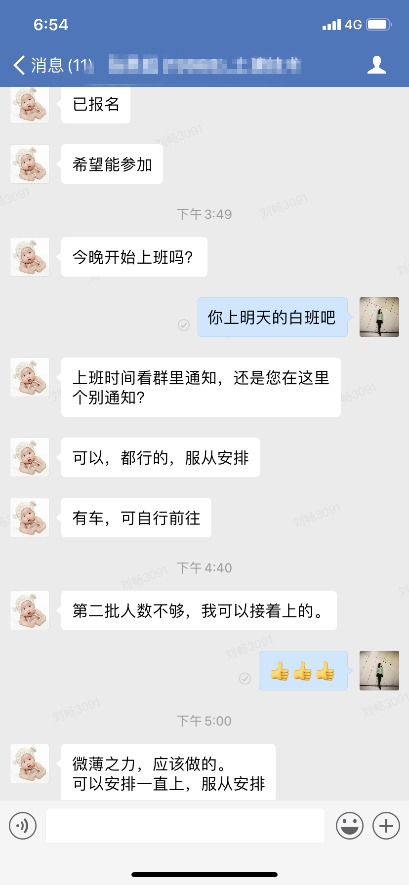 第一批報名時,很多同事因為沒有及時看到信息,報名晚了還表示遺憾。在報名結(jié)束后仍有同事不斷向劉暢打來電話或發(fā)來微信要求報名。整個下午,她的電話成了熱線電話,個人微信被報名信息刷屏。