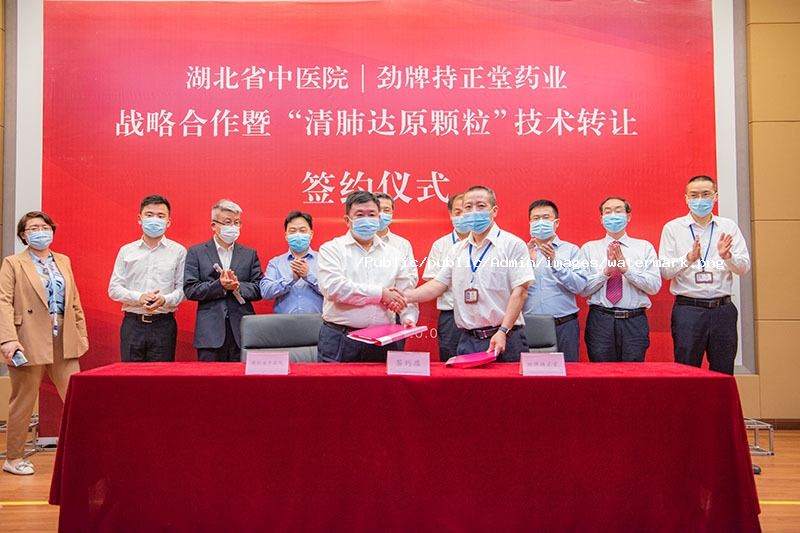 5月11日,湖北省中醫(yī)院與勁牌持正堂藥業(yè)戰(zhàn)略合作暨“清肺達原顆粒”技術(shù)轉(zhuǎn)讓簽約儀式,在勁牌持正堂藥業(yè)隆重舉行。湖北省中醫(yī)院黨委書記巴元明、院長何紹斌,黃石市衛(wèi)健委主任劉安定,勁牌公司董事長、總裁吳少勛,勁牌持正堂藥業(yè)總經(jīng)理李清安出席儀式。 來訪領(lǐng)導先后參觀了勁牌研究院、中藥提取車間,了解了公司數(shù)字提取工藝,和疫情期間中藥產(chǎn)品的生產(chǎn)捐贈情況。隨后在持正堂藥業(yè)展開座談會議。 會上,雙方對各自發(fā)展歷程、運營狀況、技術(shù)強項及面臨困難進行了深入溝通。 巴元明書記以“重大疫情”、“重大擔當”、“重大機遇”、“重大合作”四個重大高度概括此次合作及其背景。他表示,在這次傳播速度最快、感染率最廣、防控難度最大的歷史性疫情面前,雙方都展現(xiàn)出了高度的責任與擔當;同時,中醫(yī)藥在本次疫情防控中彰顯的突出效果為中醫(yī)藥產(chǎn)業(yè)的發(fā)展創(chuàng)造了天時、地利、人和的重要機遇,期望以此次“清肺達原顆粒”臨床批件申報為起點,與勁牌一起傳承精華,守正創(chuàng)新,攜手打造湖北中醫(yī)藥強省。 何紹斌院長表示,此次與勁牌的戰(zhàn)略合作,雙方目標一致,互補性強,可充分發(fā)揮湖北省中醫(yī)院的科研及臨床優(yōu)勢和勁牌的市場優(yōu)勢。此次合作基礎(chǔ)良好,前景光明。期望雙方加強溝通和交流,共同推進戰(zhàn)略合作的深入開展。 會上,湖北省中醫(yī)院院長何紹斌與勁牌有限公司董事長吳少勛,及勁牌持正堂藥業(yè)總經(jīng)理李清安,分別簽訂了“湖北省中醫(yī)院與勁牌持正堂藥業(yè)有限公司共同振興發(fā)展湖北省中醫(yī)藥事業(yè)的戰(zhàn)略合作協(xié)議”和“‘清肺達原顆粒’技術(shù)轉(zhuǎn)讓與新藥臨床前研究合作協(xié)議”。 據(jù)了解,湖北省中藥資源豐富,中藥工業(yè)存在較大提升空間,湖北省中醫(yī)院作為省內(nèi)龍頭中醫(yī)院,與勁牌達成戰(zhàn)略合作,包括“積極合作開展茯苓等湖北省優(yōu)勢中藥材的種植、基礎(chǔ)研究及產(chǎn)業(yè)化推廣應(yīng)用”以及“共同推進中藥配方顆粒與傳統(tǒng)飲片臨床等效性評價等工作的開展”,以推動湖北省中醫(yī)藥從種植、工業(yè)生產(chǎn)到臨床使用全產(chǎn)業(yè)鏈的發(fā)展,為將湖北打造為中醫(yī)藥強省助力。 清肺達原顆粒簡介:該方是在國醫(yī)大師梅國強教授的指導下,由巴元明等專家研制的組方(即湖北省中醫(yī)院“肺炎1號”),是唯一一個用于治療新型冠狀病毒肺炎的湖北省地方組方。已全面應(yīng)用于全省新型冠狀病毒感染肺炎疑似、臨床診斷病例及確診病例治療中。從當前的臨床統(tǒng)計結(jié)果來看,“清肺達原顆粒”臨床治愈率達到了95.34%,療效顯著。除治療新型冠狀病毒肺炎之外,該方還可適于由病毒引起的甲流、乙流、禽流感等流行性感冒,具有較大的潛在開發(fā)價值。