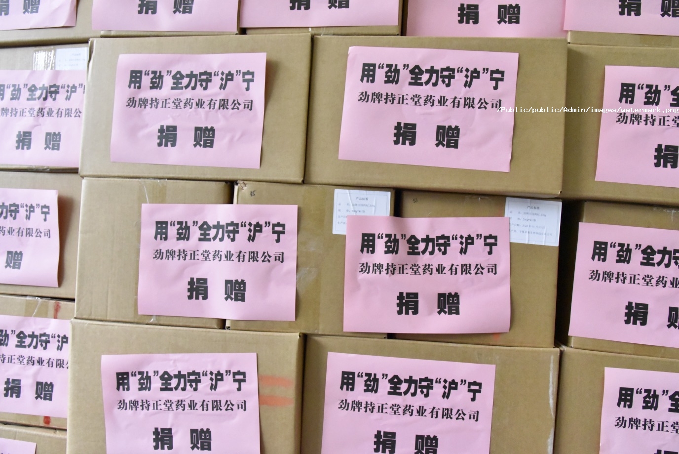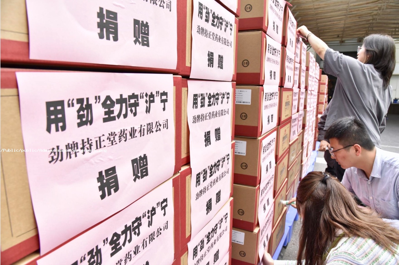 4月22日,一輛滿載抗疫物資的大貨車緩緩從勁牌公司總部成品六庫駛出,這是勁牌公司繼4月8日援助上海3200盒藿香紫蘇飲、300盒清肺達原顆粒之后的第二次捐贈。