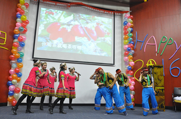 元旦晚會以一曲熱情洋溢的舞蹈《LUV》拉開了序幕。隨后,令人捧腹的小品、婀娜多姿的舞蹈、飽含深情的歌聲,一次次將晚會推向高潮。特別是悅耳的《十口茶》、逗樂的《新白娘子新編》,融入生物醫(yī)藥公司產(chǎn)品元素,在歡樂中進一步宣傳了產(chǎn)品。最后,一曲《相親相愛》拉近了所有人的距離,“我們是一家人,相親相愛的一家人”,道出了生物醫(yī)藥這個大家庭的心聲:我們是一起為共同的事業(yè)而努力奮斗的一家人!